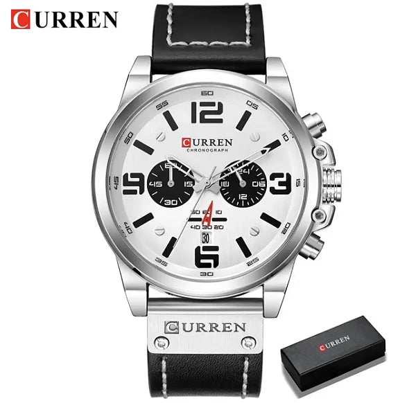 O Relógio Curren 8314 é a escolha perfeita para homens que valorizam elegância sem abrir mão da praticidade. Com um design imponente e sofisticado, este acessório combina perfeitamente com estilos casuais e esportivos, tornando-se um companheiro versátil para todas as ocasiões.